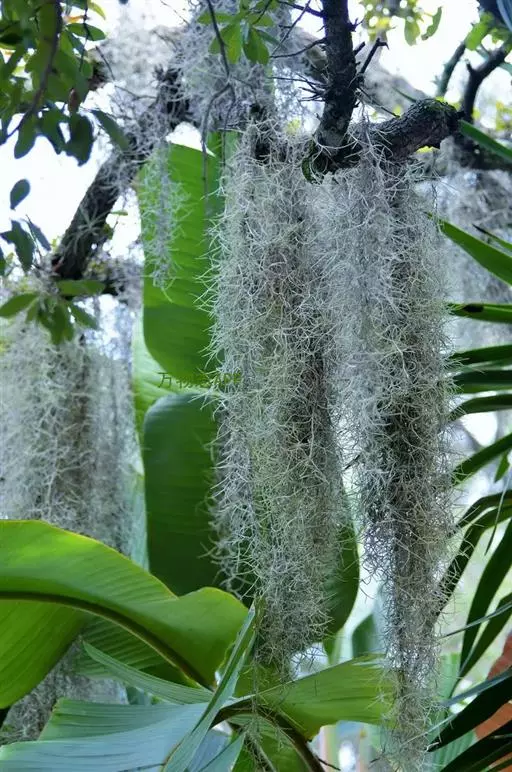 像一顶假发,像一团胡须,高悬在半空中,不见水土滋养,甚至连根在哪儿也看不到,这就是神奇植物松萝铁兰。它靠叶子上的鳞片吸收空气中的水分与养分,故又名“空气草”。