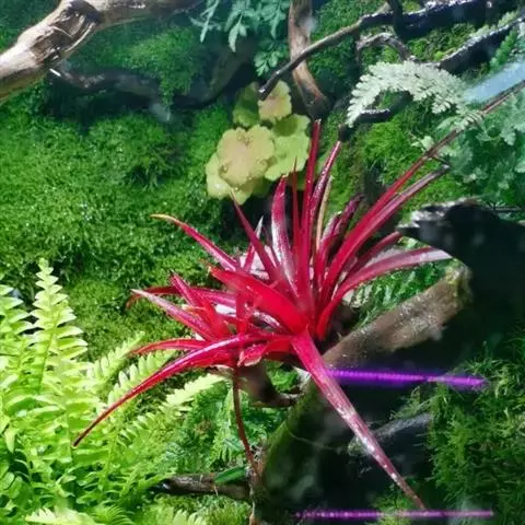 松萝铁兰是直接生长于空气之中,而无须任何土壤等培养基质的气生类植物,在长期的进化过程中,松萝铁兰不像绝大多数植物靠根吸收营养物质,而是依靠它们自身叶面上独特的“保卫细胞”——白色鳞片吸收养分和水。它们的根已经退化成木质纤维,只能起固定作用,失去了一般植物“根”的功能,所以松萝凤梨的根系可以完全暴露在外而不受影响生长,有时甚至看不到它的根,很有流浪的味道,这也构成了它最出众的观赏特色。另外,日常养护十分方便、简单,间隔数日向其喷水及保持适当的空气湿度即可。即可生长于户外,亦可以悬挂于办公室等室内环境下。由于其出众的观赏特点,而日益受到办公室白领、阳台居家花卉养植爱好者的热烈追捧。