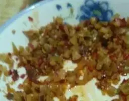 8、锅里留底油,炒香剁好的香辣酱。