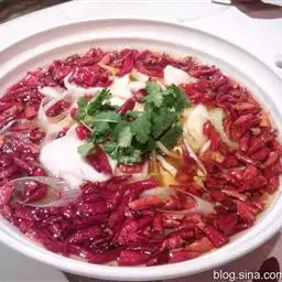 特色传统名菜,属川菜系。主料瘦黄牛肉。辅料豆芽、鸭血、肉汤、莴笋或者其他蔬菜、粉丝。调料葱、精盐、…