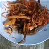 7、待油温升到7成热时,倒入虾炸到酥脆捞出。