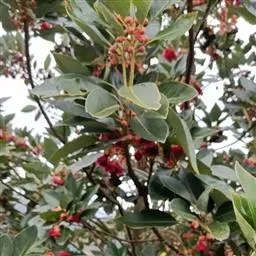 红花荷:金缕梅科红花荷属常绿乔木,高可达12米,嫩枝颇粗壮,叶厚革质,卵形,光滑无毛,有三出脉,叶…