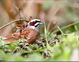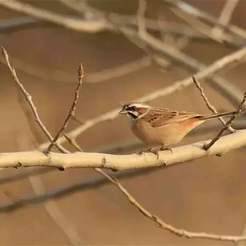 三道眉草鹀(学名:Emberiza cioides)共有五个亚种,体长约16厘米,是一种棕色鹀。具醒目的黑白色头部图纹和栗色的胸带,以及白色的眉纹。繁殖期雄鸟脸部有别致的褐色及黑白色图纹,胸栗,腰棕。雌鸟色较淡,眉纹及下颊纹黄色,胸浓黄色。三道眉草鹀的冬春季食谱以野生草种为主,夏季以昆虫为主。喜欢在开阔地环境中活动,见于丘陵地带和半山区地稀疏阔叶林地,山麓平原或山沟的灌丛和草丛中以及远离村庄的树丛和农田。主要分布在亚洲东部地区,俄罗斯的远东地区、蒙古国、朝鲜半岛、日本列岛和中国。