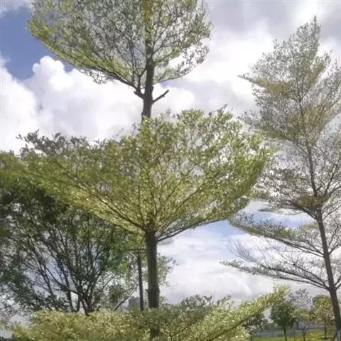 选树:用于容器化生产的小叶榄仁地栽苗质量要求较高,应根据规格要求选择树干笔直、长势健壮、层次分明、主侧枝分布均匀、无病虫害的树,并做好标记。同时尽量挑选所处位置地势较好的树木,便于起挖、吊装、运输等操作。