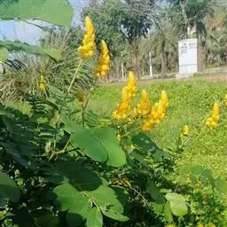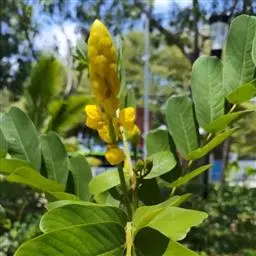翅荚决明 Roxb.)是豆科决明属灌木植物,高3米。羽状复叶,在叶柄和叶轴上有窄翅;小叶倒卵状长圆形,…
