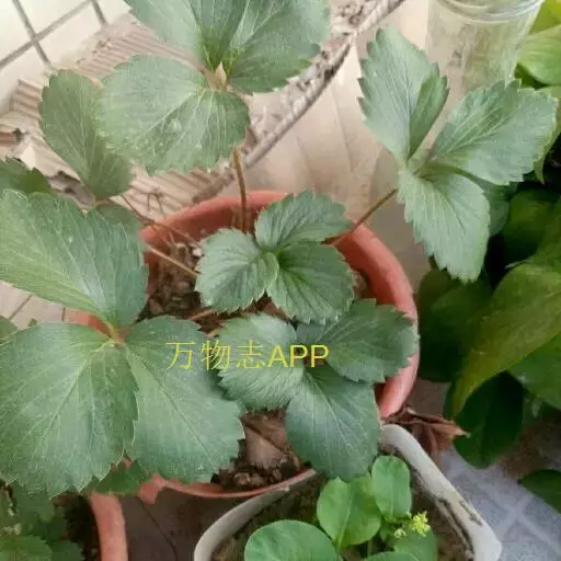 草莓(英文学名:strawberry、拉丁学名:Fragaria × ananassa Duch. 别名: 凤梨草莓),多年生草本植物。高10-40厘米,茎低于叶或近相等,密被开展黄色柔毛。叶三出,小叶具短柄,质地较厚,倒卵形或菱形,上面深绿色,几无毛,下面淡白绿色,疏生毛,沿脉较密;叶柄密被开展黄色柔毛。聚伞花序,花序下面具一短柄的小叶;花两性;萼片卵形,比副萼片稍长;花瓣白色,近圆形或倒卵椭圆形。聚合果大,宿存萼片直立,紧贴于果实;瘦果尖卵形,光滑。花期4-5月,果期6-7月 。