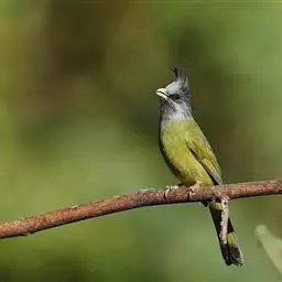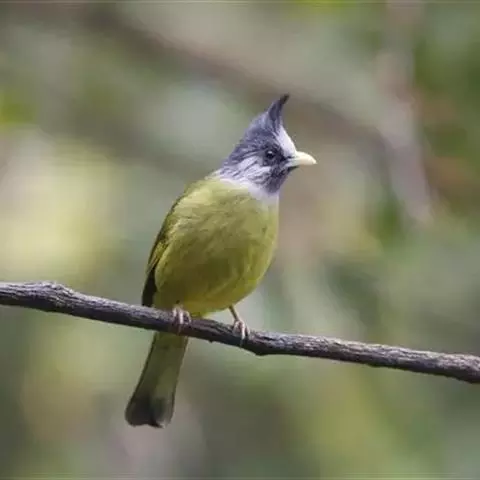 凤头雀嘴鹎:属小型鸟类,体长18-22厘米。嘴粗短、呈象牙色或乳黄色,前额和脸灰色,头顶黑色,…