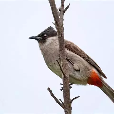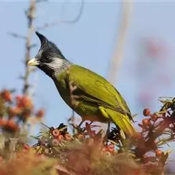 白喉冠鹎:体长20-25厘米。头顶红褐色,有长而细的羽冠、红褐色,头侧灰色。上体橄榄绿黄色,…