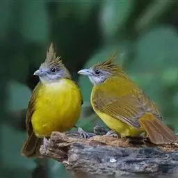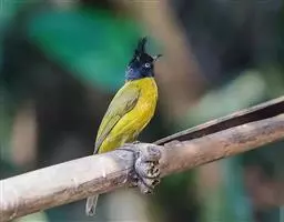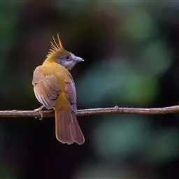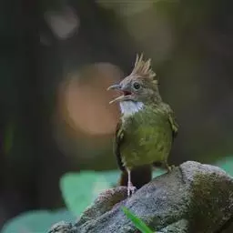 黄腹冠鹎:体长19-24厘米,是一种体型略大的褐色鹎。头顶橄榄褐色具黑褐色羽冠。白色的喉膨起,…