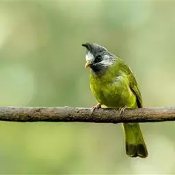 黄绿鹎,小型鸟类,体长19-22厘米。额至头顶暗褐具灰色羽缘,眼先黑色,…