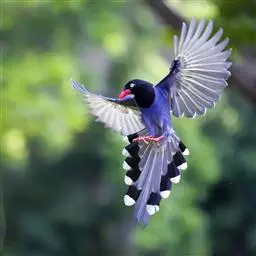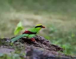 蓝绿鹊:中型鸟类,共有5个亚种。体长36-38厘米。尾长,嘴、脚红色。通体羽色主要为草绿色,…