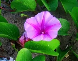 番薯 Lam.),多年生草质藤本植物,具有乳汁;其块根为白、红或黄色;茎生不定根;叶呈宽卵形或卵状心形,叶色有浓绿、黄绿、紫绿等,前端渐尖,基部呈心形或近平截;花冠为粉红、白、淡紫或紫色,呈钟状或漏斗状,无毛;蒴果呈卵形或扁圆形;由于番薯是于异花授粉,自花授粉常不结实,所以有时只见开花不见结果。 种子1-4粒,通常2粒,无毛。番薯原产于南美洲及大、小安的列斯群岛,现已广泛栽培在全世界的热带、亚热带地区,但在一些较北的地区如黑龙江省也已栽种成功,中国大多数地区都普遍栽培。番薯适应性强,喜温暖多光而不耐霜冻,抗旱耐碱,适种于肥沃而排水良好的砂质壤土,是一种易于保收的作物。番薯是一种高产而适应性强的粮食作物,在中国南方,有“一造番薯半年粮”的说法, 与工农业生产和人民生活关系密切;块根除作主粮外,也是食品加工、淀粉和酒精制造工业的重要原料;根、茎、叶可作
