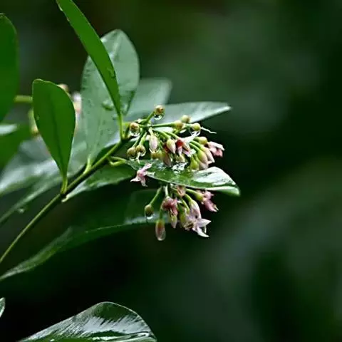 亚伞形花序,着生于侧生特殊花枝顶端,花枝长5-10厘米,通常无叶,长13-18厘米者,则中部以上具叶或仅近顶端有2-3片叶;花梗长1-1.5厘米,被微柔毛;花长4-5毫米,花萼仅基部连合,萼片长圆状卵形或披针形,顶端急尖或狭圆形,长1.5毫米,多少具腺点,无毛;花瓣白色或粉红色,卵形,长4-5毫米,顶端急尖,外面无毛,里面多少被细微柔毛,具腺点;雄蕊较花瓣略短,花药狭长圆状披针形,背部无腺点或有;雌蕊与花瓣等长或略长,子房卵珠形,无毛;胚珠5枚,1轮。果球形,直径5-6毫米,鲜红色,具腺点。花期5-6月,果期10-12月,有时植株上部开花,下部果熟。
