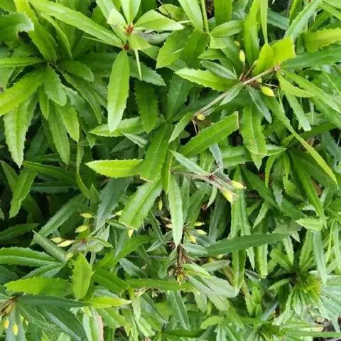 大叶小檗是小檗科小檗属植物,常绿灌木,高可达2米。老枝具棱槽,叶革质,椭圆状倒披针形,基部楔形,上…