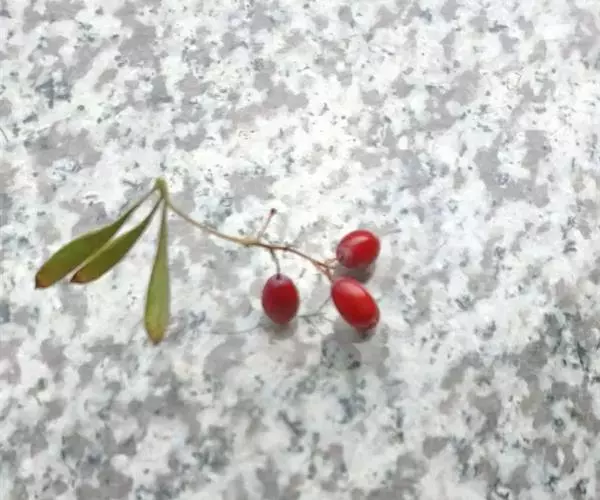 浆果长圆形,红色,长约9毫米,直径约4-5毫米,顶端无宿存花柱,不被白粉。花期5-6月,果期7-9月。