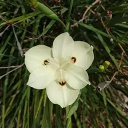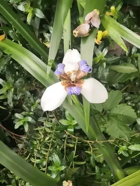 亮叶鸢尾为常绿多年生草本植物。叶面光滑、亮绿色,花茎扁平叶状。原产于巴西。