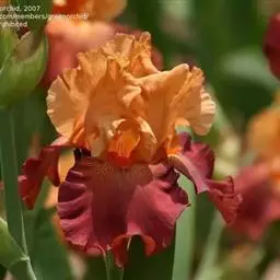 德国鸢尾,为鸢尾科鸢尾属的植物。根状茎粗壮,扁圆形,有环纹;叶绿色灰绿色,堂具白粉,…
