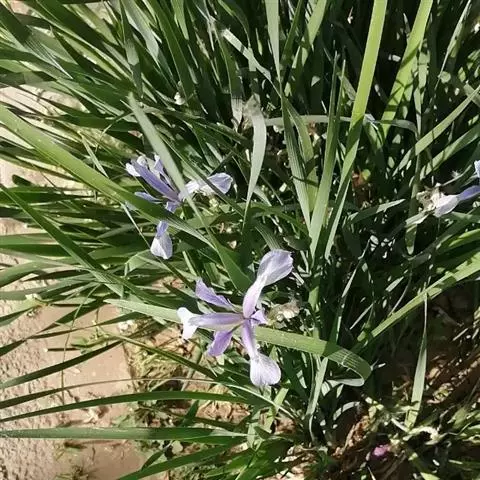 双色野鸢尾为多年生草本植物,叶子呈剑状淡绿色。…