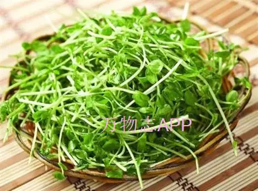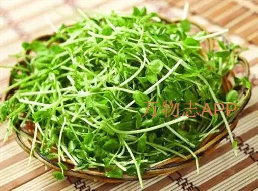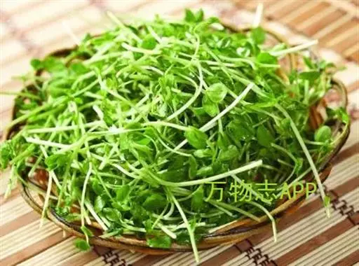 豌豆苗:蔬菜的一种。豌豆的嫩茎叶, 也是苗类蔬菜的一种,又被称为“豌豆尖”“龙须菜”,“龙须苗”.是以蔬菜豌豆的幼嫩茎叶、嫩梢作为食用的一种绿叶菜。在南方特别是江南地区最受欢迎,扬州人在岁首的餐桌上必摆上一盘豌豆苗,以表岁岁平安之意。