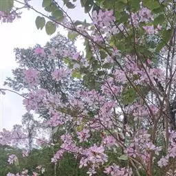 洋紫荆:落叶乔木;树皮暗褐色,近光滑;幼嫩部分常被灰色短柔毛;枝广展,硬而稍呈之字曲折,无毛。叶近…