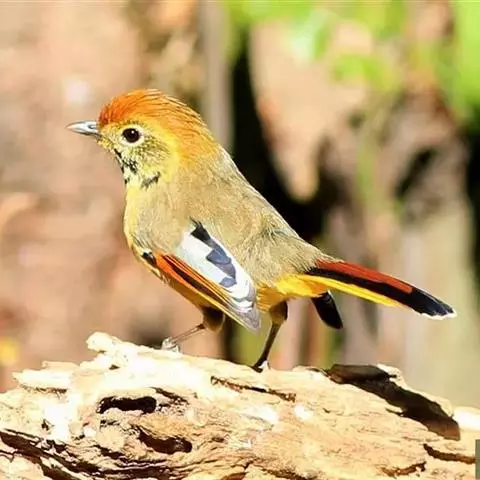 银耳相思鸟小型鸟类,体长14~18厘米。头顶黑色,耳羽银灰色,前额橙黄色;外侧飞羽橙黄色,基部朱红色,…