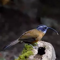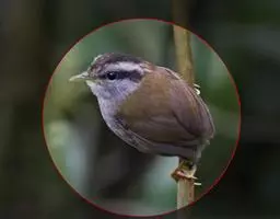 剑嘴鹛:中型鸟类,体长21-22厘米。嘴特别细长而向下弯曲,头顶和头侧烟灰色具长而窄的白色眉纹,…