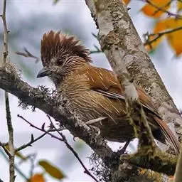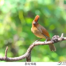 条纹噪鹛是画眉科、噪鹛属中型鸟类,体长28-32厘米。头具短的羽冠,上体栗褐色,飞羽外翻蓝灰色。…