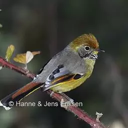 金胸雀鹛是莺科、雀鹛属小型鸟类,体长10-11厘米。头黑色,头顶中央有一道白色中央冠纹,…