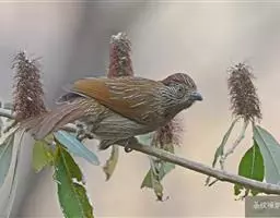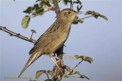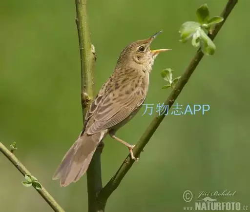 黑斑蝗莺(学名:Locustella naevia):体重13.5-14.5克,体长130-140厘米。外型极似小蝗莺,但上体橄榄褐色略浅,头顶及背部密布的暗色斑纹较不显著;眼先及眼后橄榄褐色,眼纹细而明显;飞羽和尾羽褐色,尾羽先端无白斑,外翈缘褐色。下体皮黄白色或淡黄色;颏、喉、腹中央白色;胸沾皮黄褐色,无斑纹;尾下覆羽褐色,中央较暗形成羽干纹。