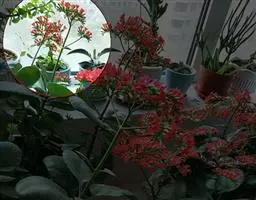 叶子表面宽厚,富肉质感且带有磨纱质感,看像石头质地;开红色小花,生于植株顶部,倒伞形密生,形状像花…