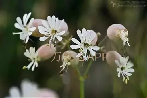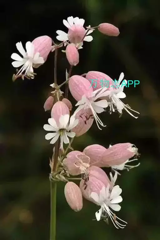 一年生草本,高15-45厘米,全株被柔毛。茎单生,直立或上升,不分枝或分枝 蝇子草 ,被短柔毛和腺毛。叶片长圆状匙形或披针形,长1.5-3厘米,宽5-10毫米,顶端圆或钝,有时急尖,两面被柔毛和腺毛。单歧式总状花序;花梗长1-5毫米;苞片披针形,草质,长达10毫米;花萼卵形,长约8毫米,直径约2毫米,被稀疏长柔毛和腺毛,纵脉顶端多少连结,萼齿线状披针形,长约2毫米,顶端急尖,被腺毛;雌雄蕊柄几无;花瓣淡红色至白色,爪倒披针形,无毛,无耳,瓣片露出花萼,卵形或倒卵形,全缘,有时微凹缺;副花冠片小,线状披针形;雄蕊不外露或微外露,花丝下部具缘毛。蒴果卵形,长6-7毫米,比宿存萼微短或近等长;种子肾形,两侧耳状凹,长约1毫米,暗褐色。2n=24。花期5-6月,果期6-7月。