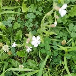 蝇子草,别名:白花蝇子草、西欧蝇子草,拉丁文名:Silene gallica Linn. 石竹科、石竹属一年生草本,高15-45厘米,全株被柔毛。茎单生,直立或上升,不分枝或分枝,被短柔毛和腺毛。叶片长圆状匙形或披针形,顶端圆或钝,有时急尖,两面被柔毛和腺毛。单歧式总状花序;被稀疏长柔毛和腺毛,纵脉顶端多少连结,萼齿线状披针形,蒴果卵形,长6-7毫米,比宿存萼微短或近等长;种子肾形,两侧耳状凹,长约1毫米,暗褐色。2n=24。花期5-6月,果期6-7月。