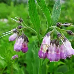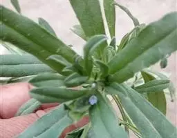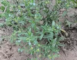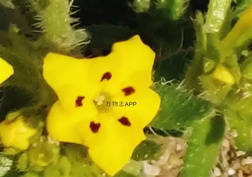 多年生草本。根稍含紫色物质。茎高20-30厘米,有疏分枝,密生灰白色短柔毛。叶 无叶柄,狭卵形至线状长圆形,长1-2厘米,宽2-6毫米,先端急尖,两 面都有短伏毛和具基盘的短硬毛,边缘具钝锯齿,齿端有硬毛。镰状聚伞花序长1.5-5厘米,有数朵花,排列较疏;苞片与叶同型。花萼长约1厘米,裂片线 形,两面密生长硬毛和短硬毛;花冠黄色,筒状钟形,长15-22毫米,外面有短毛,檐部直径5-7毫米,常有紫色斑点;雄蕊着生花冠筒中部(长柱花)或喉部(短柱花),花药长约1.6毫米;子房4裂,花柱丝状,稍伸出喉部(长柱花)或仅达花冠筒中部,先端浅2裂。小坚果三角状卵形,长约2.7毫米,有疣状 突起和短伏毛。花果期6-9月 。
