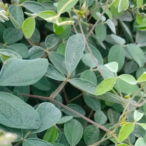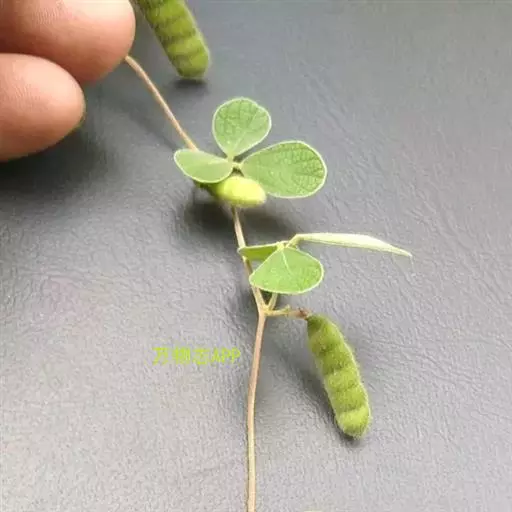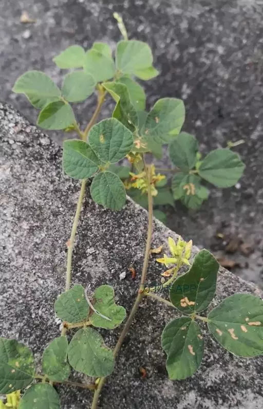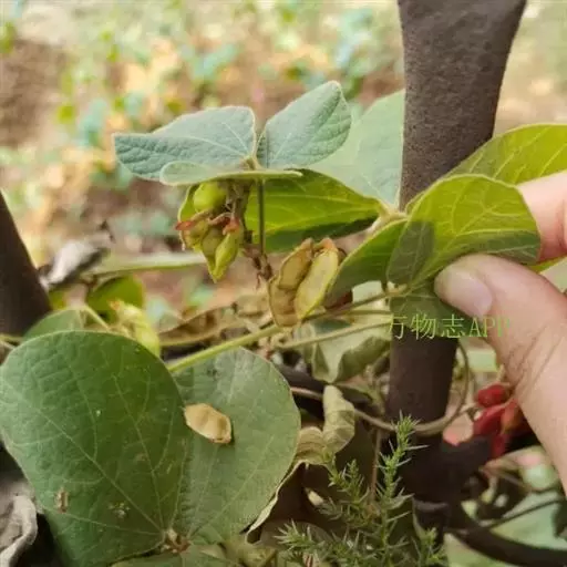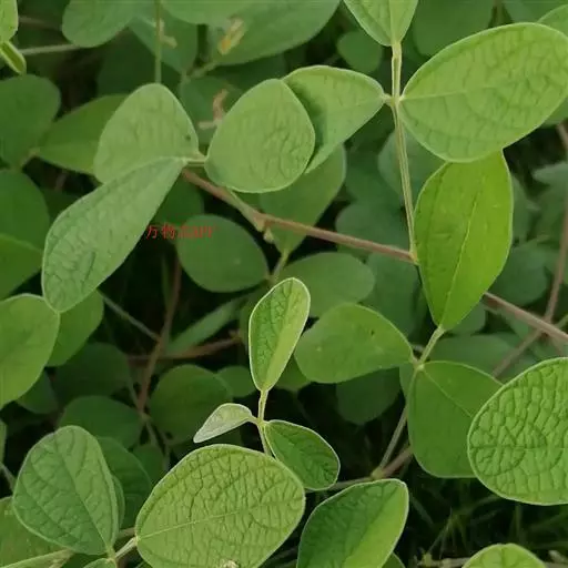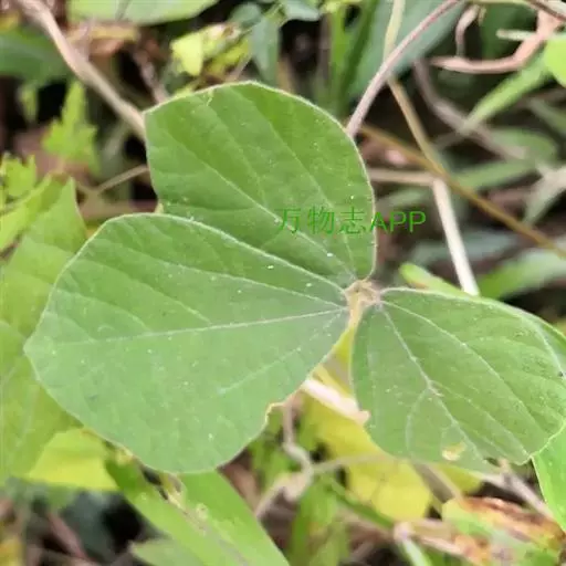 多年生缠绕草本。各部密被淡黄色柔毛。茎蔓长。3出复叶,顶生小叶近于圆形,长2.5~6cm,宽2.5~5.5cm,先端急尖或短渐尖;侧生小叶斜阔卵形,或斜阔椭圆形,长2~6cm,宽1.5~2.5cm,先端急尖,基部圆形;叶片纸质,上面疏被短柔毛,背面密被长柔毛和橘黄色透明腺点;托叶线状披针形,不脱落。总状花序腋生,花10余朵;长约7mm;花萼钟状,5裂;花冠黄色,龙骨瓣有长喙;雄蕊10,二体,花药1室;子房上位,胚珠2,花柱长,基部弯曲,被毛,柱头头状。荚果短,长圆形,红紫色,长约1.5cm,阔约9mm;种子1~2粒,黑色,有光泽。花期5~9月,果期7~10月。