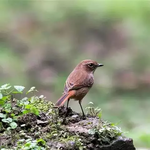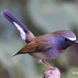 红尾歌鸲:体长13-15厘米。上体橄榄褐色。尾羽棕栗色,眼先和颊黄褐色,眼周淡黄褐色。…