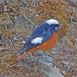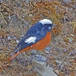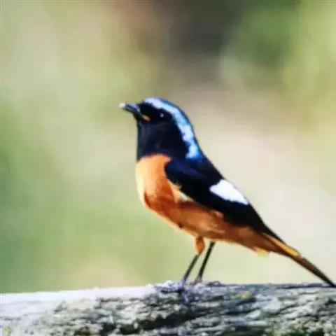 蓝额红尾鸲体长14-16厘米。雄鸟夏羽前额和一短眉纹辉蓝色,…