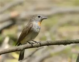 棕胸蓝姬鹟:属小型鸣禽,体长10-13厘米,体重6-10克,是一种体型很小的灰蓝及棕色鹟,…