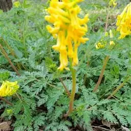 黄堇 Pers.)是罂粟科,紫堇属灰绿色丛生草本植物,高可达60厘米,基生叶多数,莲座状,花期枯萎。…