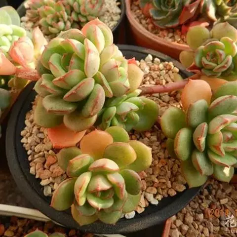 红边月影为景天科石莲花属多肉植物,在温差增大,光照增多时绿色的叶子会呈现边沿红色,非常好看!…