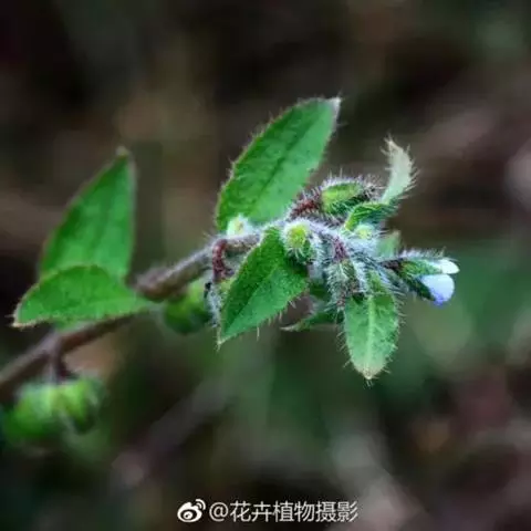 多年生草本植物,高30-60cm,叶披针形,有毛,基生叶丛生。疏生一侧螺旋状聚伞花序;花鲜紫色至紫色,花小,径约6MM。