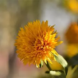 万寿菊(Tagetes erecta L)为菊科万寿菊属一年生草本植物,茎直立,粗壮,具纵细条棱,分枝向上平展。叶羽状分裂;沿叶缘有少数腺体。头状花序单生;总苞杯状,顶端具齿尖;舌状花黄色或暗橙色;管状花花冠黄色。瘦果线形,基部缩小,黑色或褐色,被短微毛;冠毛有1-2个长芒和2-3个短而钝的鳞片。花期7-9月。