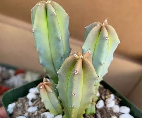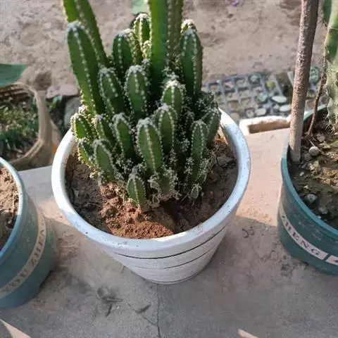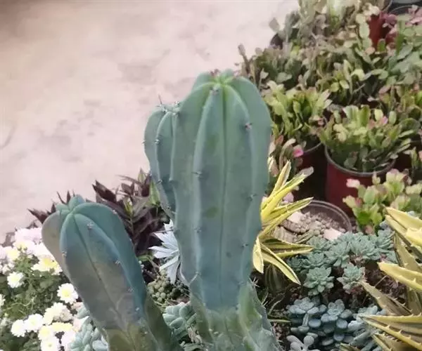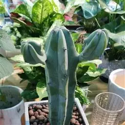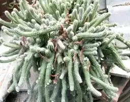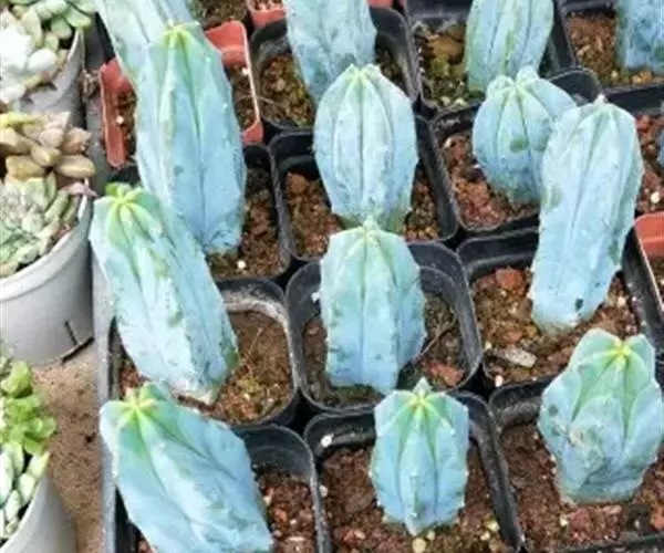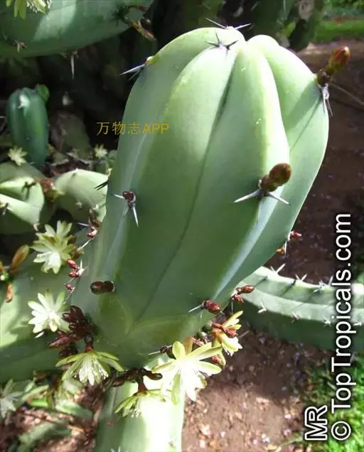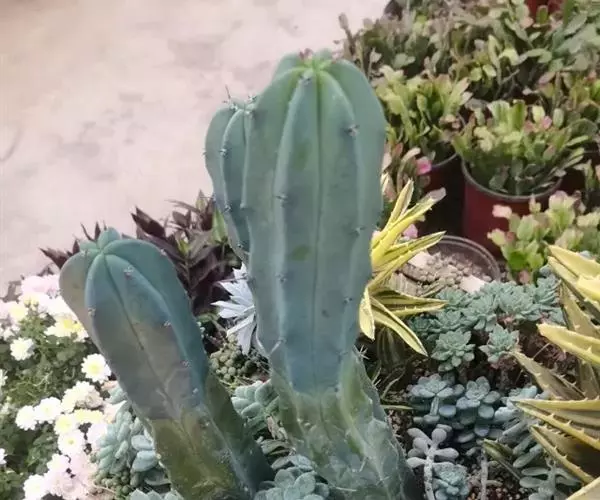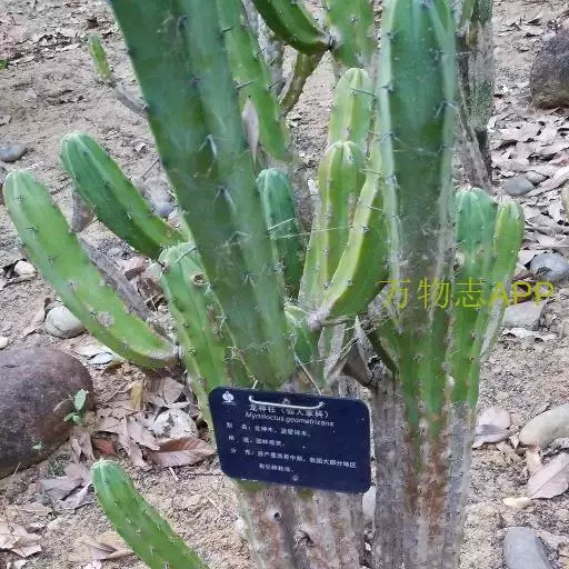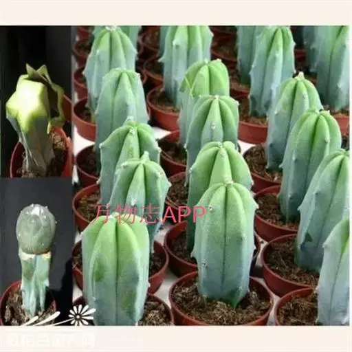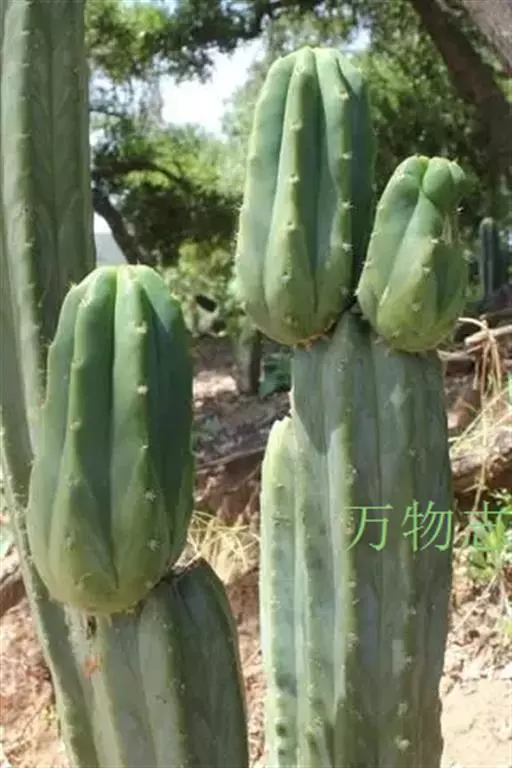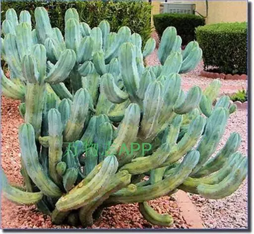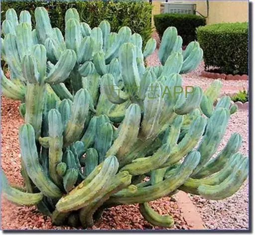 龙神木,又称蓝爱神木。原产墨西哥中部为肉质植物、也称多浆植物,植株呈多分枝的乔木状,在原产地可长到3~4米高,柱状肉质茎粗6~10厘米,具5~6棱,刺座生于棱缘,排列稀疏,周刺5枚,长约0.2厘米,初为红褐色,后为黑褐色;黑色中刺1枚,匕首形,长达7厘米,但栽培中幼株的中刺往往不发育。茎表皮光滑,蓝绿色,新长出的茎被有白粉。而老茎因风吹雨淋,白粉会逐渐脱落,使表皮呈蓝灰色。花朵直径2.5~3.5厘米,白色中稍带绿色,花期夏季,昼开夜闭,具芳香。浆果蓝色。