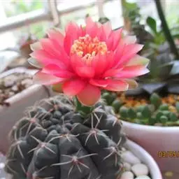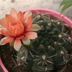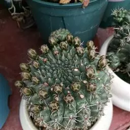 绯花玉 Speg.)是仙人掌科、裸萼球属多肉植物,植株呈扁球形,表皮墨绿色,刺针状,…