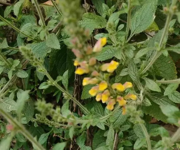 多年生粗壮、坚挺、直立、灌木状草本,高可达1米,全体被多细胞腺毛。茎圆柱形,下部木质化,多分枝。叶多,叶柄长6-12毫米,叶片卵形至卵状披针形,纸质,长2-8厘米,端急尖或渐尖,基部狭楔形,边缘具尖锯齿。花近于无梗,集成顶生稠密的穗状总状花序,长6-20厘米,仅基部有间断;苞片狭披针形,较萼稍短;花萼长5-6毫米,主脉5条明显,萼齿尖锐,钻状三角形,与萼筒等长;花冠黄色,外面带紫斑,多少被毛,花冠筒较花萼约长1倍,上唇顶端近于截形,有时有凹缺,下唇较长,有明显的褶襞,花药有长药隔,具柄;子房顶端及花柱基部被毛。蒴果长卵形,长约5-6毫米,密被棕色梗毛;种子长约0.5毫米,黄色,表面粗糙。花果期11月至次年3月。