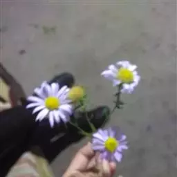 头状花序单生枝端,径2.5-3厘米,基部稍膨大,有苞片状小叶;总苞半球形,直径1.2-1.5厘米;总苞片约2层狭披针形,长7-8毫米,宽1-1.5毫米,顶端渐尖,有缘毛,绿色。舌状花1层,雌性,管部长约1.5毫米;舌片条状矩圆形,淡蓝色或淡白色,长1.2厘米,宽2.5毫米;管状花两性,黄色,长4毫米,基部管长1.3毫米,裂片5,1长4短,长1-1.5毫米,花柱附属物三角形。