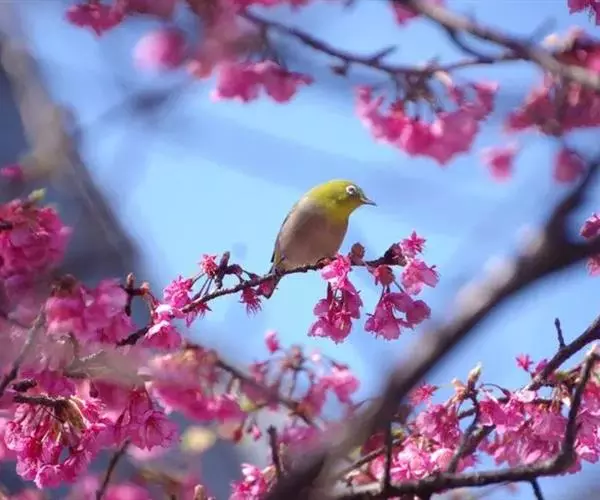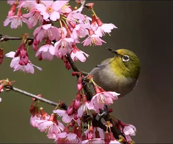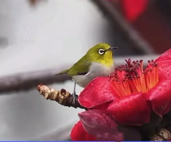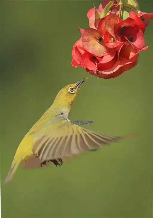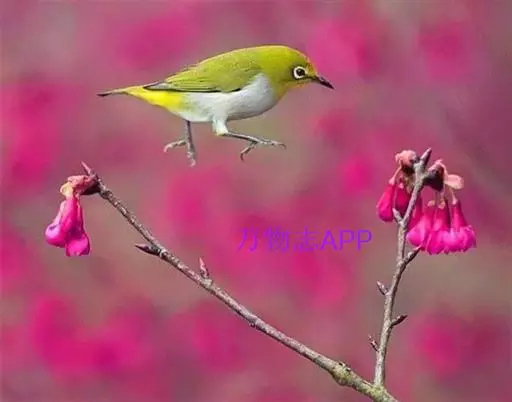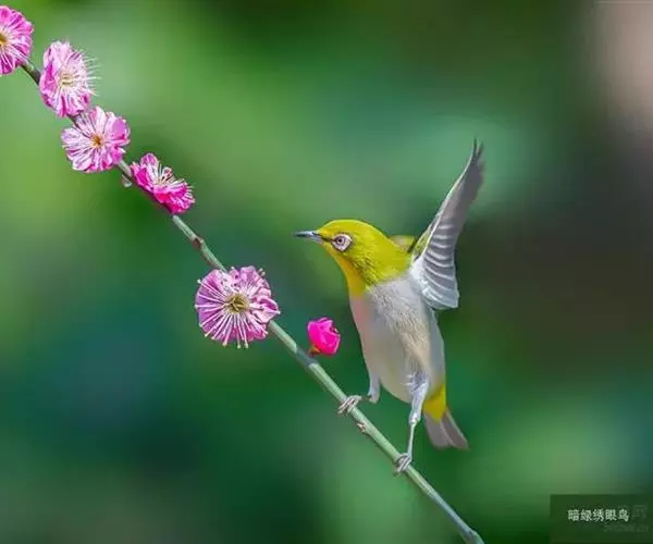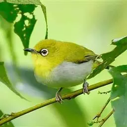 暗绿绣眼鸟(学名:Zosterops japonica)俗名绣眼儿,粉眼儿 暗绿绣眼鸟 ,白眼儿,白目眶,粉燕儿。体小而细弱,背绿色、腹白色。性活泼,在林间的树枝间敏捷地穿飞跳跃。鸣叫声似“滑儿,滑-儿,滑-儿”,婉转动听。非繁殖季节亦有集群之习性,冬季能达50~60只。主要在阔叶林营巢,巢小而精致,为吊篮式,隐藏在浓密的枝叶间,不易发现。每年3~8月间繁殖,多在南方,每窝产3~4枚卵,为纯蓝绿或纯白色,平均重1克。