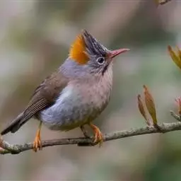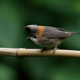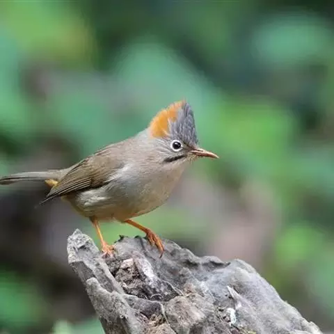 栗耳凤鹛,雌雄羽色相似。额、头顶至枕灰色,头顶有一短的不甚明显的羽冠,…
