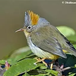 纹喉凤鹛:小型鸟类,体长13-16厘米。头顶和羽冠暗褐色或褐灰色,上体橄榄褐色,飞羽黑褐色,…