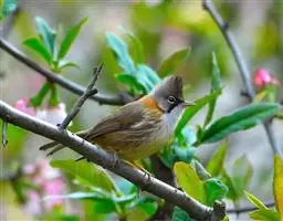 红胁绣眼鸟(学名:Zosterops erythropleura)俗名红胁粉眼、北粉眼、绣眼儿、紫燕儿。体色和暗绿绣眼相似,两胁呈显著的栗红色。生活习性亦与前者基本相同。繁殖于东北、河北东北部山林地区,除主食昆虫(以害虫为主),亦有少量杂草种子及少数作物种子。有时巢亦筑于距地面2.5米的树枝上,高时能达10米,巢材亦因条件不同而变化,除杂草、苔藓、嫩枝外,亦有纸屑、蛛丝、棕丝、树叶等等。