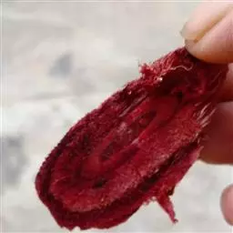 蒴果近梨形,长9-10厘米,直径4-6厘米,果皮厚,木质,几黄褐色,外面无毛,内面密被长绵毛,开裂,每室种子多数。种子大,不规则的梯状楔形,长2-2.5厘米,宽1-1.5厘米,